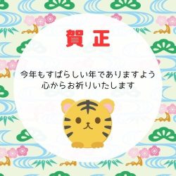 年賀状 【年賀状】無料ラインスタンプ「寅年年賀状 かわいい虎とお正月のイラスト 新しい年が幸せな1年となりますように 2022年」